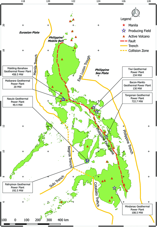 The Philippines ranks third among the top geothermal power producers in the world based on installed capacity as of 2020, with 1,918 megawatts, behind the United States’ 3,676 megawatts and Indonesia’s 2,133 megawatts.[3] Situated along the Pacific Ring of Fire which is an area of high volcanic activity, it comes as no surprise that the Philippines has significant geothermal resources. The Philippine island arc is a tectonically active region, which was formed from the accretion and amalgamation of geologic terranes of various origins. The island arc is sandwiched between two oppositely dipping trench systems. This complex tectonic setting resulted in numerous active volcanoes, some of which are closely associated with geothermal steam fields.[4]